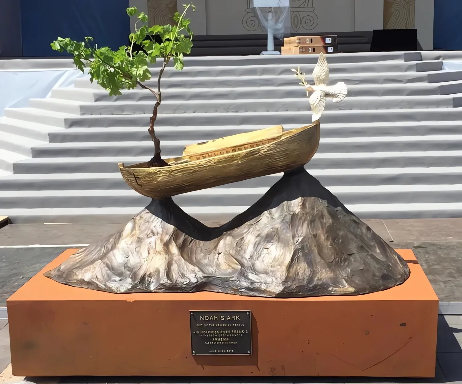 В 2016 году правительство Армении поручило Майклу Араму создать скульптуру в дар Папе Римскому Франциску – символический подарок от армянского народа. Художник выбрал образ Ноева ковчега – столь значимый для истории и культуры Армении.