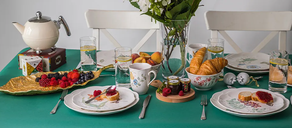 Самый классический вариант — белая. Обратите внимание на фарфор бренда Mix&Match, Wedgwood, Portmeirion. На белой посуде любое блюдо будет смотреться выигрышно, а если вы добавите яркие акценты, например, подстановочную тарелку (Spode, Bordallo Pinheiro или Certified International — ваш стол будет выглядеть стильно и с изюминкой.
