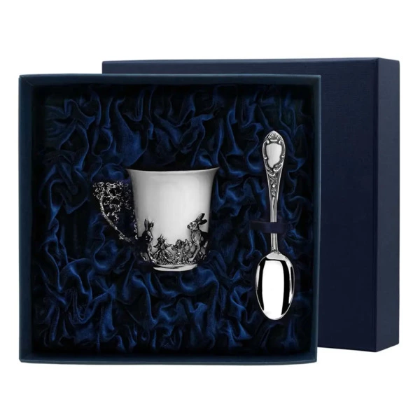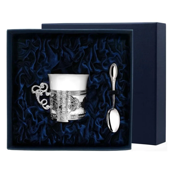 Чашка кофейная с ложкой в футляре АргентА Август-Октавиан 49,77 г, серебро 925