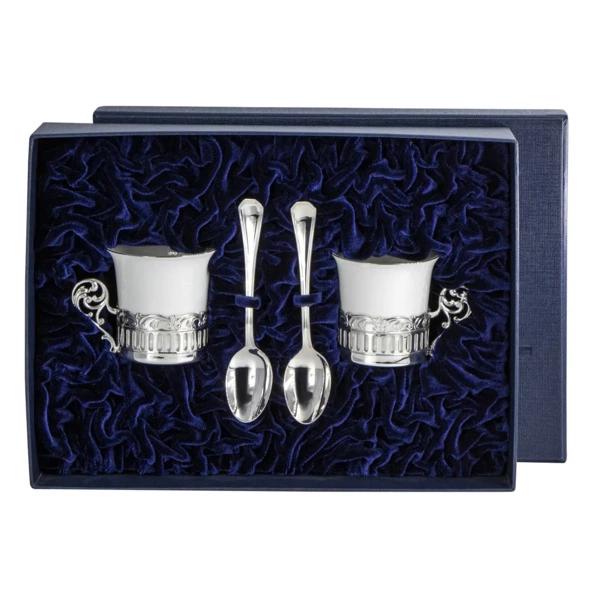 Чашка кофейная с ложкой в футляре АргентА Серебро&Фарфор Богема 70 мл 37,24 г, серебро 925, фарфор