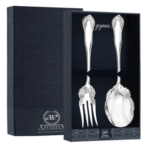 Набор для салата АргентА Classic Узоры, ложка и вилка 196,03 г, серебро 925