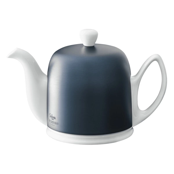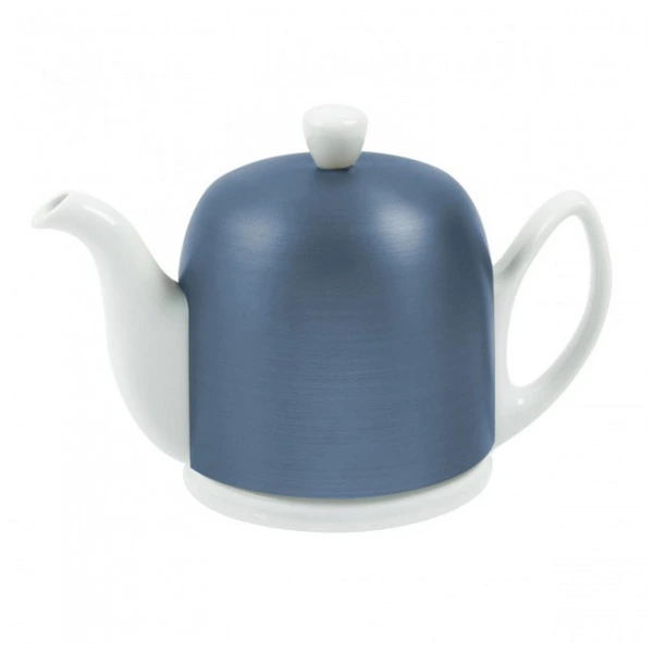 Чайник заварочный Degrenne Salam Minerale 700 мл на 4 чашки, белый с матовой синей крышкой, фарфор,