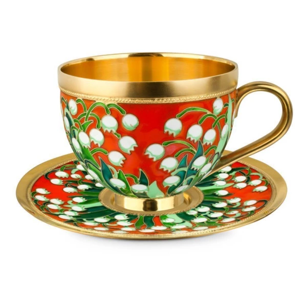 Чашка чайная с блюдцем Русские самоцветы 431,81 г, серебро 925, позолота