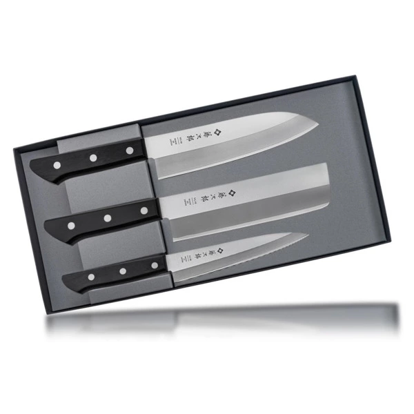 Хотя модельный ряд Тоджиро и разделен на серии западного и восточного дизайна, но при внимательном рассмотрении ножей видно, что в каждой из них обе кулинарные традиции тесно переплетаются, влияя и взаимно обогащая друг друга. Так имиджевая серия Nickel-Damascus Steel хотя и выполнена на европейский манер, но своему шарму обязана традиционному для японского оружия великолепному клинку с 63-слойными дамасскими обкладками. И, напротив, - традиционная ориентальная серия All Stainless Japanese Style обрела особую популярность благодаря эргономичным и эффектным цельнометаллическим рукоятям, присущим европейской традиции изготовления кухонного инструмента.