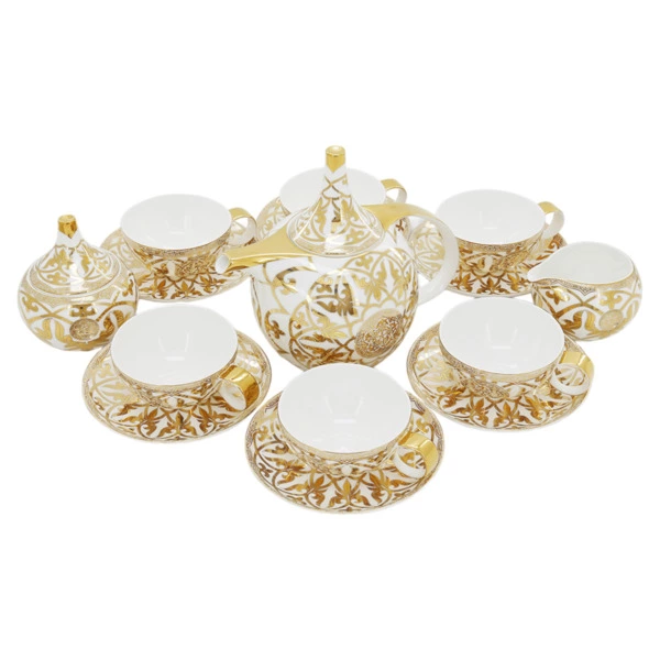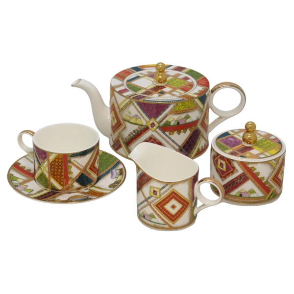 Сервиз чайный Empire Лоскутки на 6 персон 15 предметов, фарфор твердый, золотая деколь, п/к