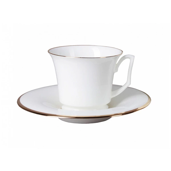 Чашка кофейная с блюдцем ИФЗ Золотая лента Юлия 145 мл, фарфор костяной
