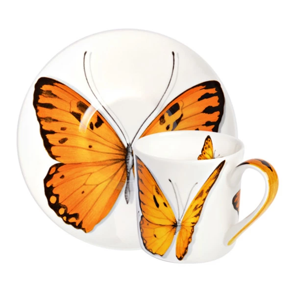 Чашка кофейная с блюдцем Taitu Свобода Бабочка 100 мл, фарфор костяной, желтый