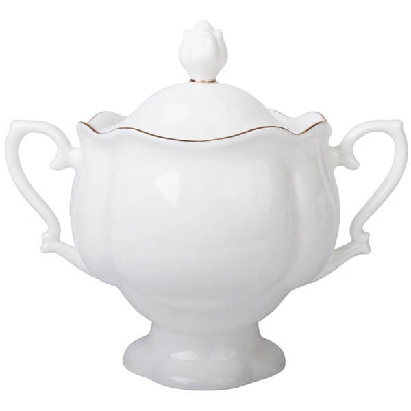 Сахарница ИФЗ Золотая лента Наташа 300 мл, фарфор костяной
