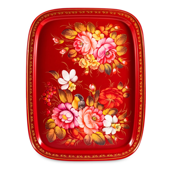 Поднос круглый Жостовская фабрика декоративной росписи UG 22 см, сталь нержавеющая