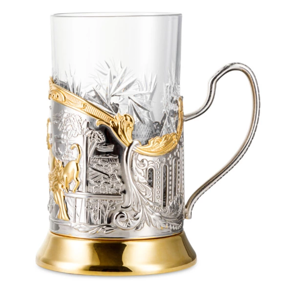 Стакан с подстаканником Кольчугинский мельхиор Охотники, латунь