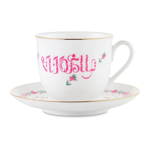 Чашка кофейная с блюдцем ИФЗ Ландыш Фокус Счастье 180 мл, фарфор костяной