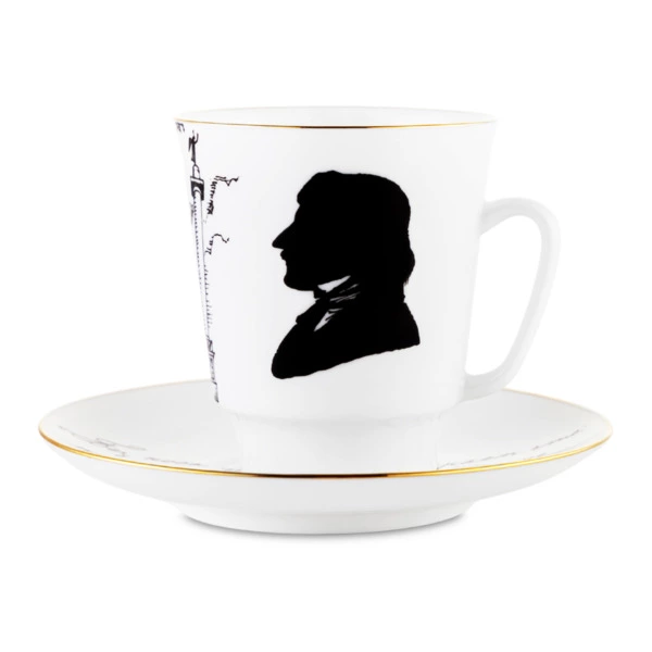 Чашка кофейная с блюдцем ИФЗ Майская Русские писатели Гоголь 165 мл, фарфор костяной