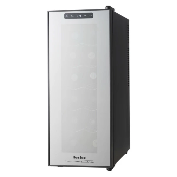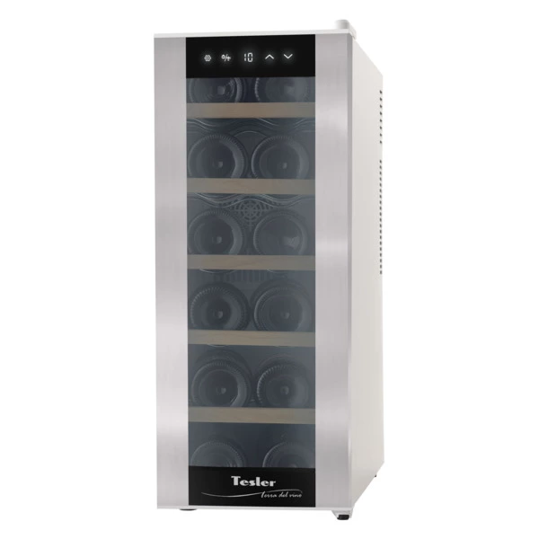 Винный шкаф на 12 бутылок TESLER WCV-120 SILVER 63,5х50х25 см, 1 зона, от +10°C до +18°C, серебро