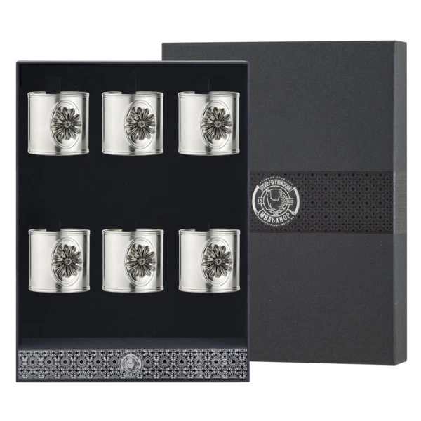 Набор колец для салфеток в футляре Кольчугинский мельхиор Пламя, 6 предметов, посеребрение, п/к