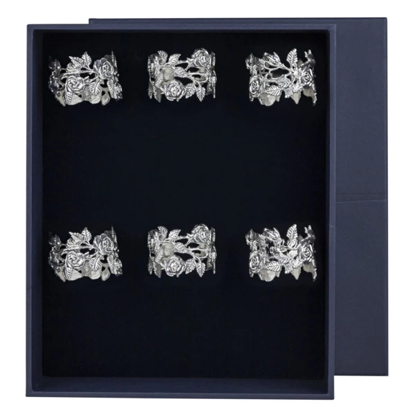 Набор колец для салфеток посеребренный в футляре Кольчугинский мельхиор Серебряная роза 4 см, 6 шт,