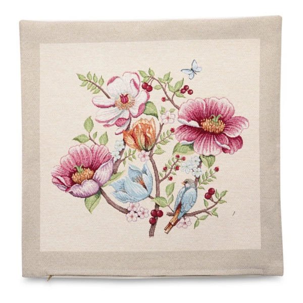 Наволочка Mix&Match Home Магнолия 45х45 см, гобелен, бежевая