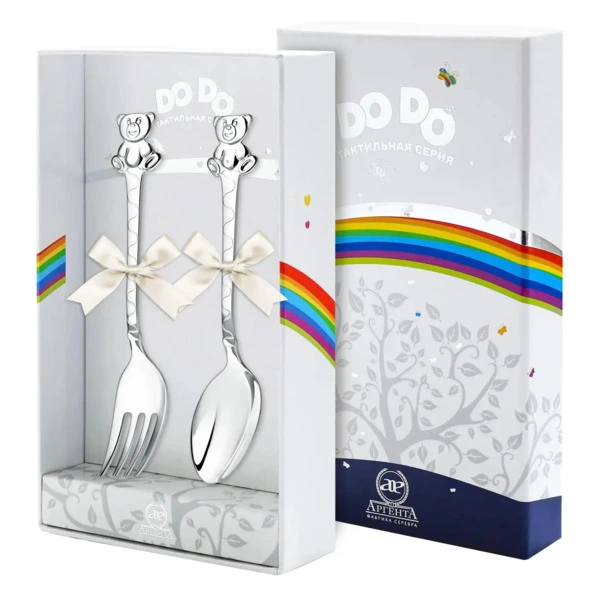 Набор детский в футляре АргентА Do Do Медвежонок с оранжевой эмалью, вилка и ложка 37,55 г, серебро