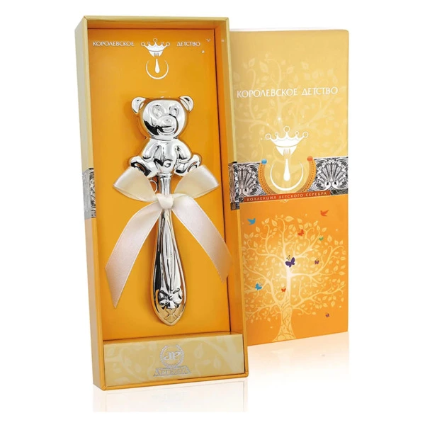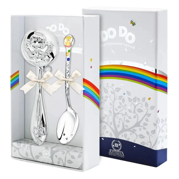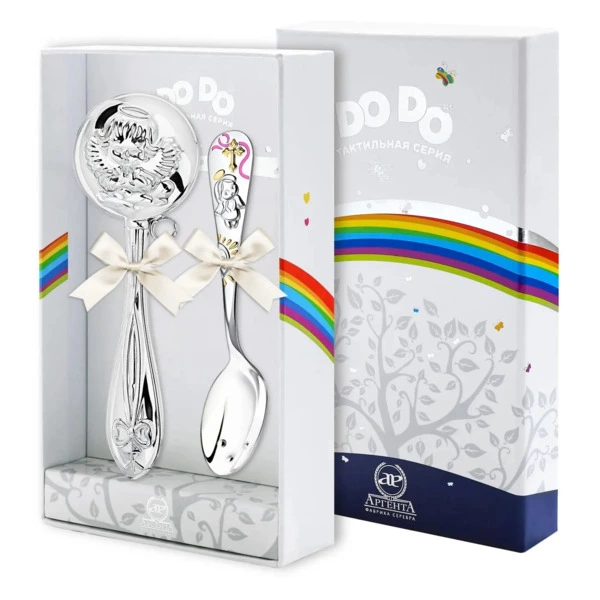 Набор для малышей в футляре АргентА Do Do Ангел с розовой эмалью, ложка и погремушка 52,1 г, серебр
