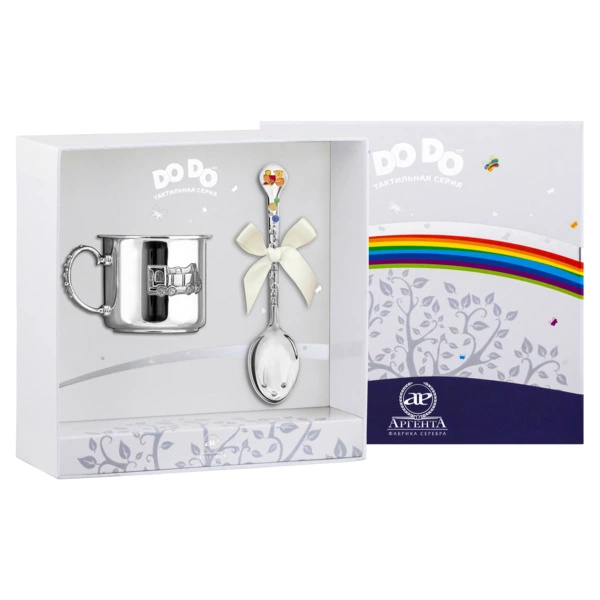 Набор для малышей в футляре АргентА Do Do Паровозик, кружка, ложка и пустышка 102,18 г, серебро 925