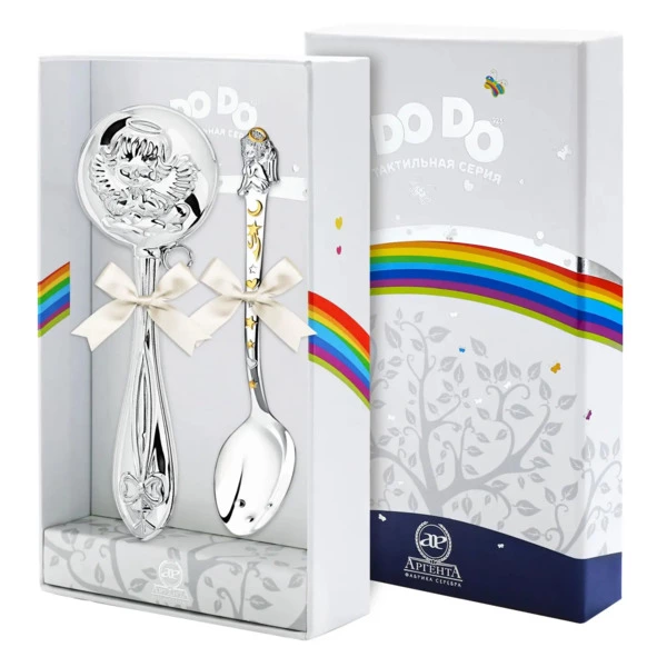 Набор для малышей в футляре АргентА Do Do Ангел, погремушка и ложка 41,3 г, серебро 925