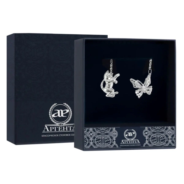 Ионизатор воды в футляре АргентА От Души Кот с бабочкой 11,24 г, серебро 925