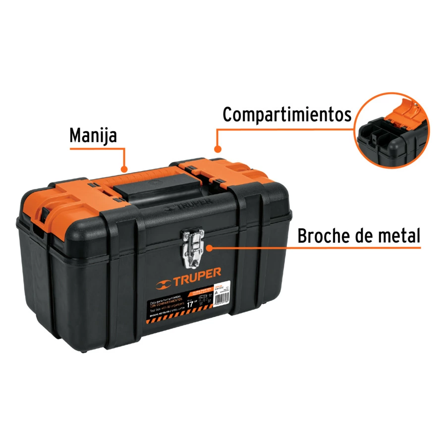 Ящик для инструмента 17 с органайзером Truper 43х25х23 см, пластик, черно-оранжевый, 102434, 00010766591