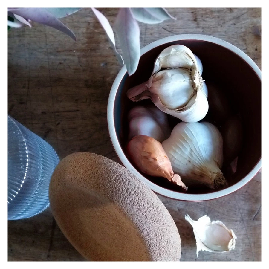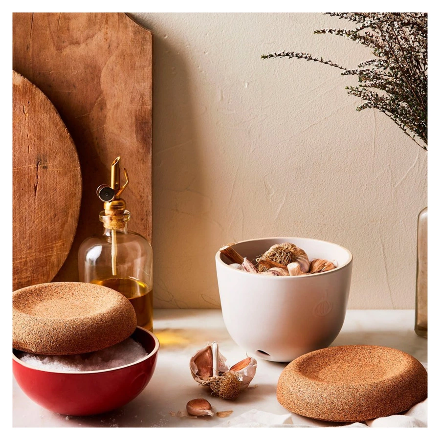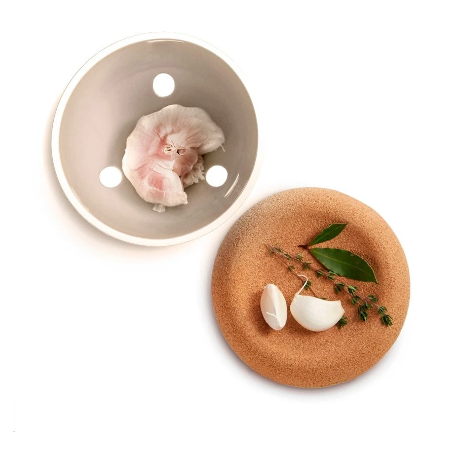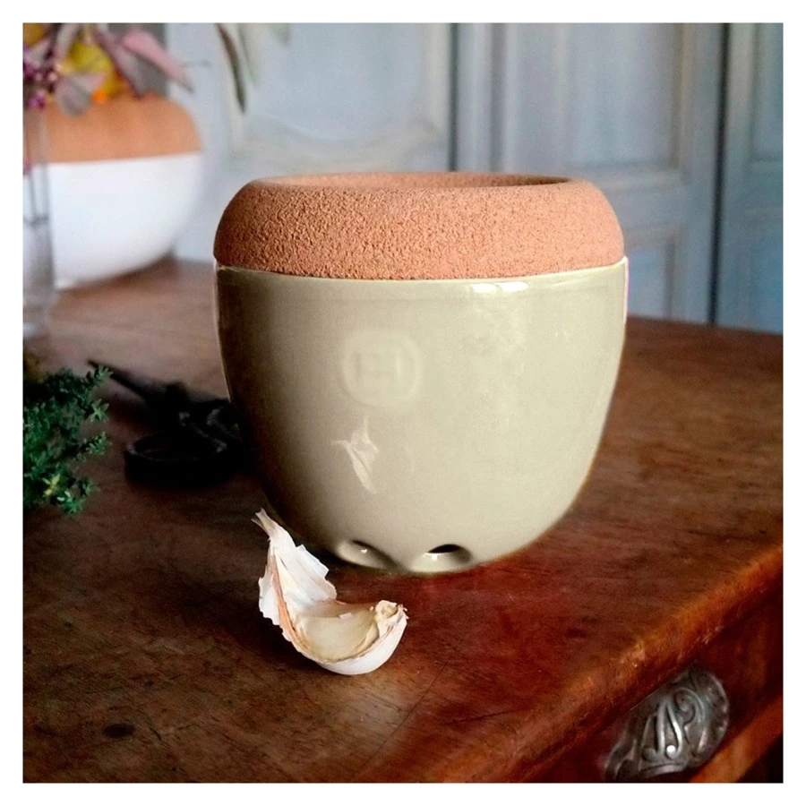 Ёмкость для хранения чеснока изготовлена из натуральных материалов в стильном дизайне. Ёмкость позволит вам сохранить свежий чеснок и лук-шалот в отличном виде. Благодаря крышке внутрь изделия не будет попадать свет, что предотвратит эффект прорастания, а 3 маленьких отверстия на дне изделия обеспечат эффект вентиляции для идеальных условий хранения продуктов. Вогнутая крышка позволяет положить на банку ещё одну ёмкость. Можно мыть в посудомоечной машине. Все продукты Emile Henry производятся во Франции и имеют десятилетнюю гарантию.