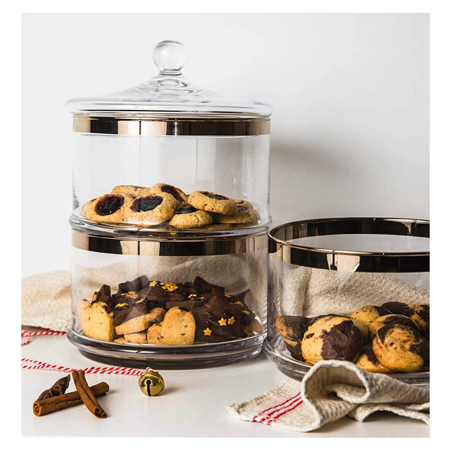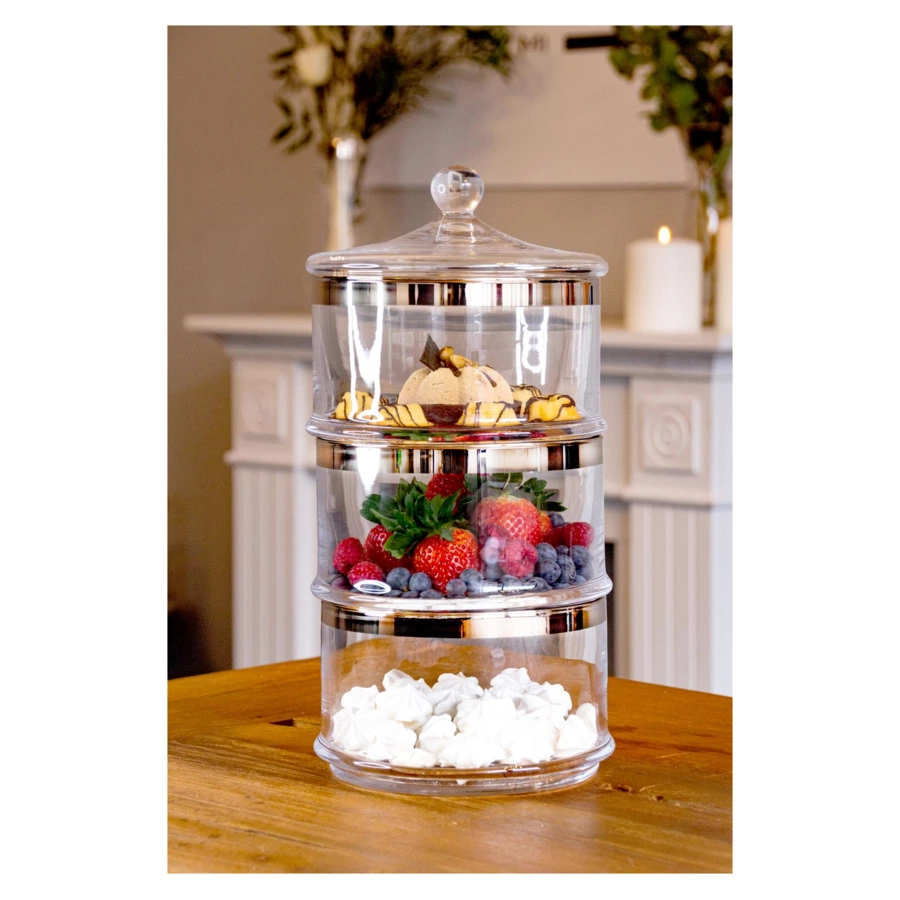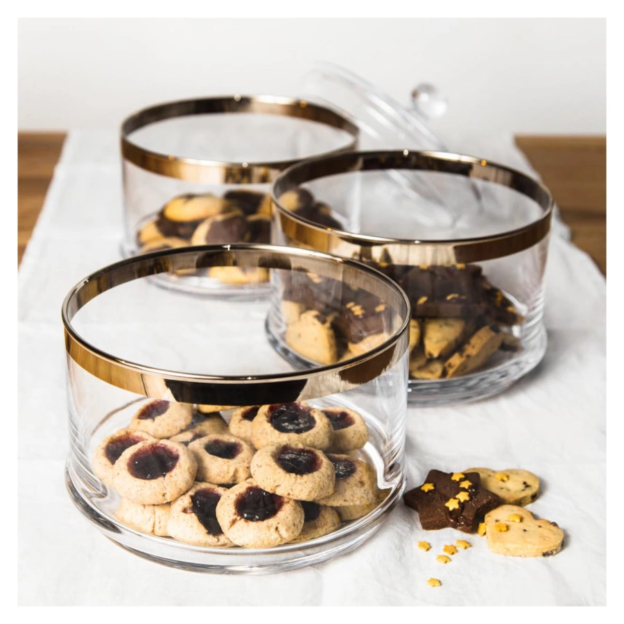 Набор банок для конфет «Виго» от Edzard представляет собой комплект емкостей, которые обеспечивают удобное и красивое хранение любимых лакомств. Изделия правильной цилиндрической формы можно использовать самостоятельно или поставить друг на друга, тем самым экономя место на кухне. Прозрачное хрустальное стекло позволяет рассмотреть содержимое, а платиновый ободок защищает кромку и служит дополнительным элементом декора. Стеклянная крышка оснащена удобной шарообразной ручкой.