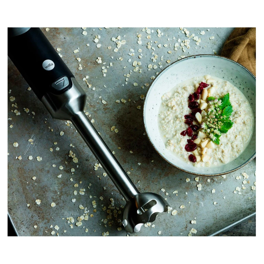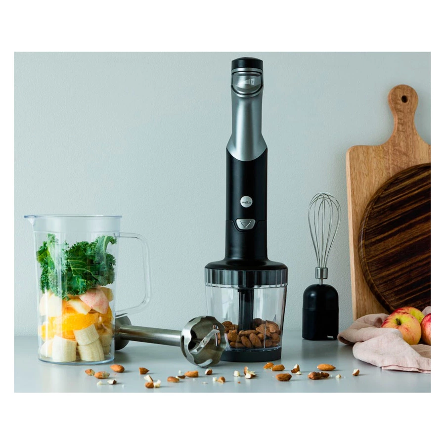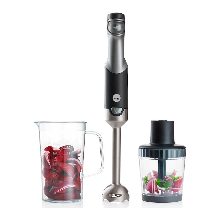 Погружной блендер — идеальный инструментом для приготовления пищи. Бесступенчатая регулировка скорости с плавной регулировкой одним пальцем. Прорезиненное покрытие обеспечивает удобный захват и удобство использования. В комплект входит чаша для взбивания с крышкой и венчик. Чаша измельчителя отлично подходит для нарезки лука, овощей или мяса, а крышка позволит использовать его в качестве контейнера для хранения готовых блюд.