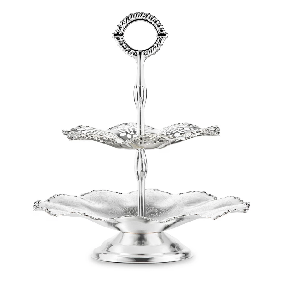 Блюдо двухъярусное Queen Anne 23 см, сталь, посеребрение, волнистый борт, 00010611718