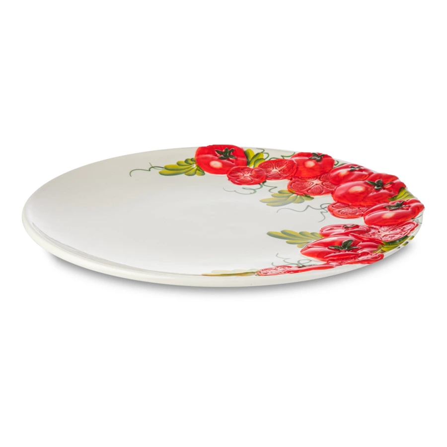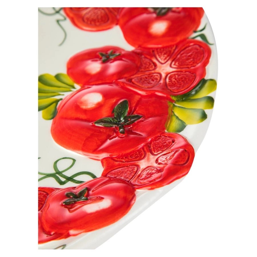 Круглое блюдо из коллекции «Томаты» от Edelweiss декорировано традиционными для Италии продуктами: сочными помидорами, пряным базиликом, нежной моцареллой и пикантными маслинами. Изделие идеально подойдёт для подачи салата «Капрезе», а также разного вида нарезок и закусок. Модель изготовлена из керамики с 100 % натуральным составом. Материал соответствует всем мировым стандартам экологической безопасности. Технология двойного глазурования придаёт тарелке глянцевый блеск и надёжно защищает рисунок от внешних воздействий.