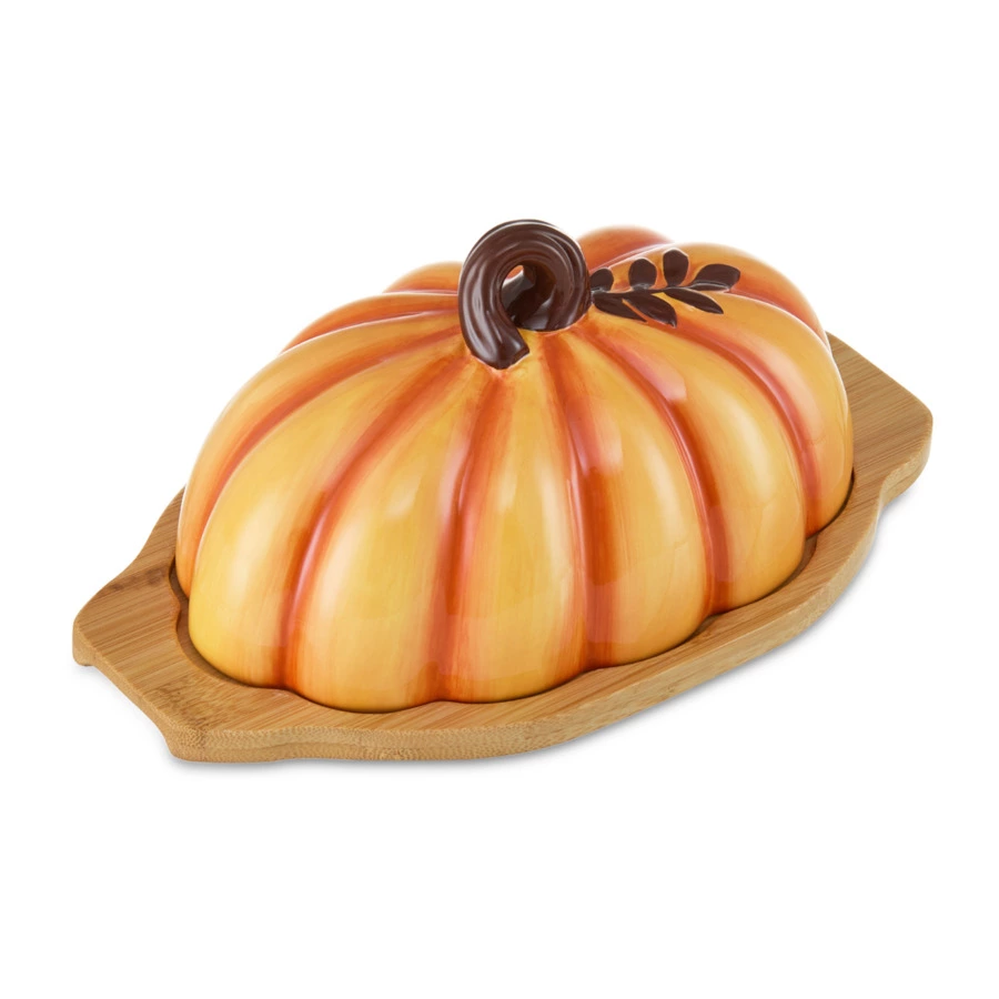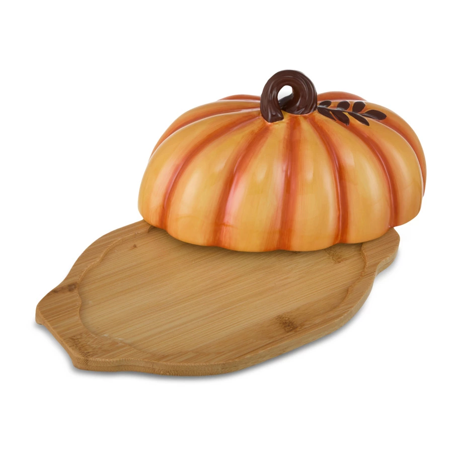 Блюдо «Тыковка» из коллекции «Родная природа» станет главным украшением праздничной сервировки. Оно обязательно привлечет внимание и задаст характер семейному ужину или обеду. Модель, изготовленная из керамики, состоит из двух частей: плоского деревянного подноса и крышки, выполненной в виде половинки тыквы. Верхняя часть крышки украшена хвостиком, который одновременно служит ручкой. Блюдо от Decor de table можно использовать для подачи нарезок, холодных и горячих закусок, канапе. Керамическая крышка надежно защитит продукты от заветривания или остывания.