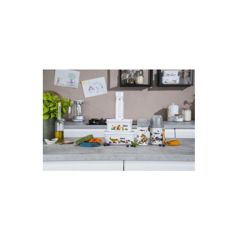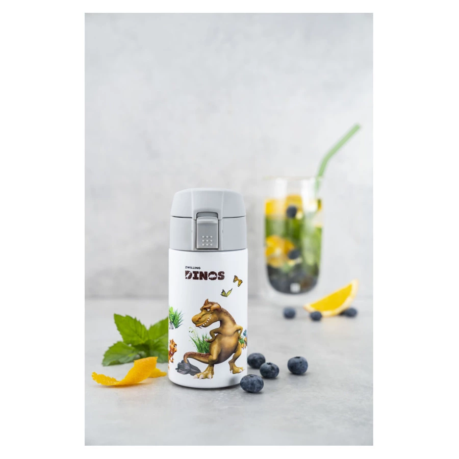 Вода, холодный чай или любой другой напиток — вы всегда можете положиться на герметичную детскую бутылку для напитков от Zwilling. Каждому поклоннику динозавров понравится дизайн бутылки Zwilling Dinos. Благодаря тонкой удобной форме и нескользящему дну бутылка удобна в использовании для детей. Дети старше трёх лет могут легко справиться с открывающим механизмом, а крышку можно отсоединить, что упрощает очистку.