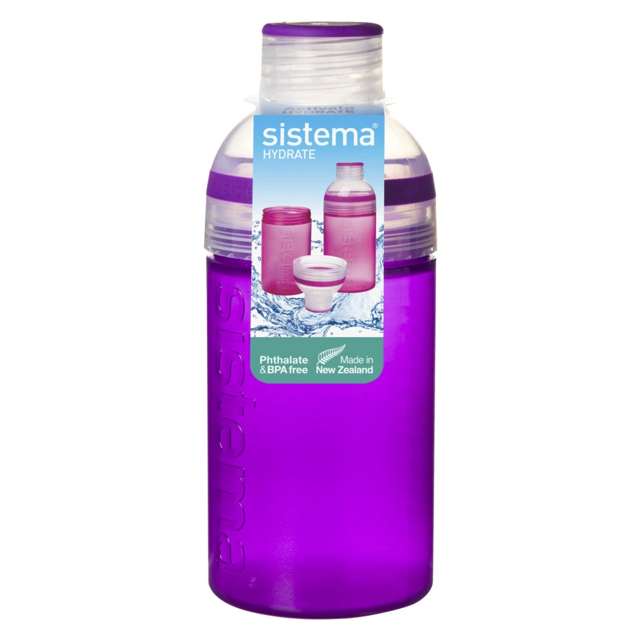 Бутылка для воды Трио из коллекции Hydrate – отличное решение, чтобы взять с собой напиток на работу, в школу, в спортзал или на прогулку. Изделие не содержит бисфенол-А и фталаты, поэтому безопасно для здоровья. Приготовьте дома и возьмите с собой освежающие или фруктовые напитки: через широкое горлышко можно удобно добавлять кубики льда или кусочки фруктов. Дизайн бутылки позволяет использовать верхнюю часть как стаканчик. Бутылка не предназначена для горячих и газированных напитков.