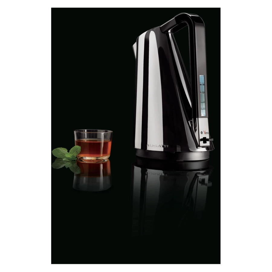 Чайник Vera Easy очень удобен в использовании. Для его запуска достаточно одного лёгкого прикосновения, отключение происходит автоматически при закипании. Стройный корпус из нержавеющей стали 18/10 свободно вращается на подставке в любом направлении. Благодаря нестандартному дизайну края корпуса и основания создаётся впечатление лёгкости и свободного парения над поверхностью.