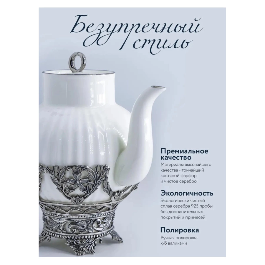 СЕРЕБРО&ФАРФОР – эксклюзивная коллекция Фабрики серебра «АргентА», созданная совместно с Императорским фарфоровым заводом. В основу дизайна коллекции легла красота природы, которая в сочетании с многовековыми традициями русских мастеров приобрела новый притягательный смысл, элегантность и завораживающую грацию. Чайные и кофейные сервизы из тончайшего костяного фарфора в изысканном серебряном обрамлении поражают своей красотой и высокой детализацией.
