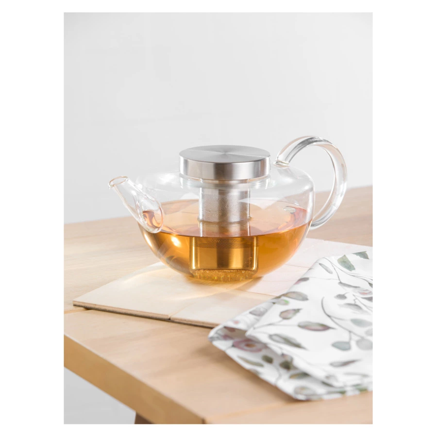 Заварочный чайник из коллекции Mon matin станет стильным украшением вашего чаепития. Полностью прозрачное изделие позволит насладиться не только вкусом, но и цветом благородного напитка. Модель выполнена из прочного термостойкого стекла. Внутренняя стеклянная колба дополнительно убережет от попадания в жидкость чаинок, а дугообразная деревянная ручка обеспечит удобную эксплуатацию и защитит от ожогов. Чайник от Decor de table станет великолепным подарком для любителей уютных посиделок за чашкой чая.