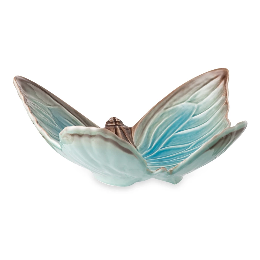 Чаша для фруктов станет ярким украшением вашего повседневного стола или званого обеда. Модель выполнена из керамики в виде бабочки с полураскрытыми крыльями. Это впечатляющая по реалистичности мини-скульптура с искусной проработкой каждого штриха и детали.