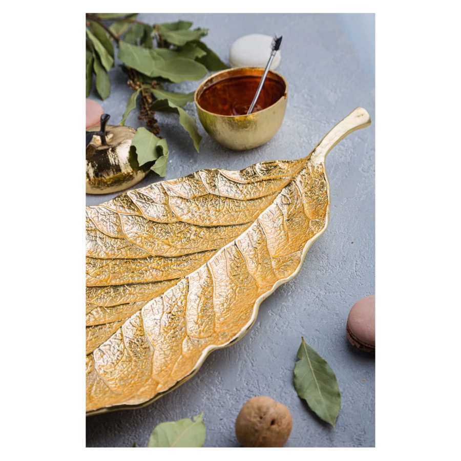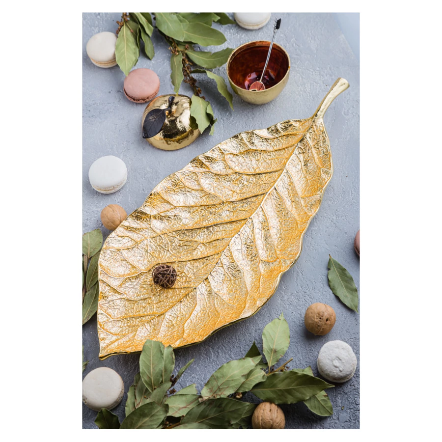 Чаша-лист Michael Aram Лист магнолии 50 см, сталь нержавеющая, эмаль, золотистая, 00010557867