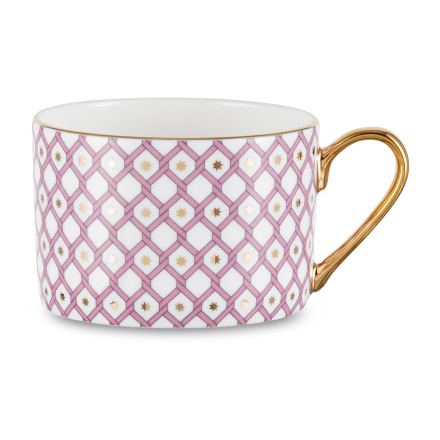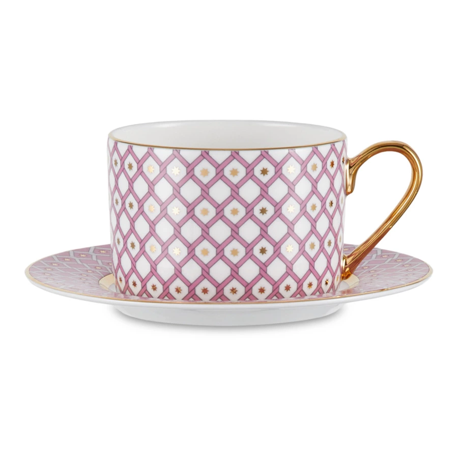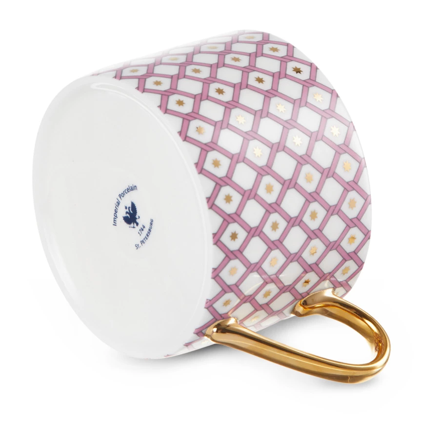 Чайная пара входит в коллекцию «Астра». Нежный, благородный оттенок розового цвета, выбранный для «Астры», напоминает удивительный бриллиант «Розовая звезда». Этот драгоценный камень считается одним из самых редких и дорогих в мире. Геометрический паттерн, созданный художником Юлией Чистяковой, является оммажем на великое наследие Императорского фарфорового завода, включая Собственный сервиз Елизаветы Петровны середины XVIII века и легендарную «Кобальтовую сетку» Анны Яцкевич. Звезды, изображённые на фарфоре, предопределили название коллекции, ведь с греческого «астра» переводится как «звезда».