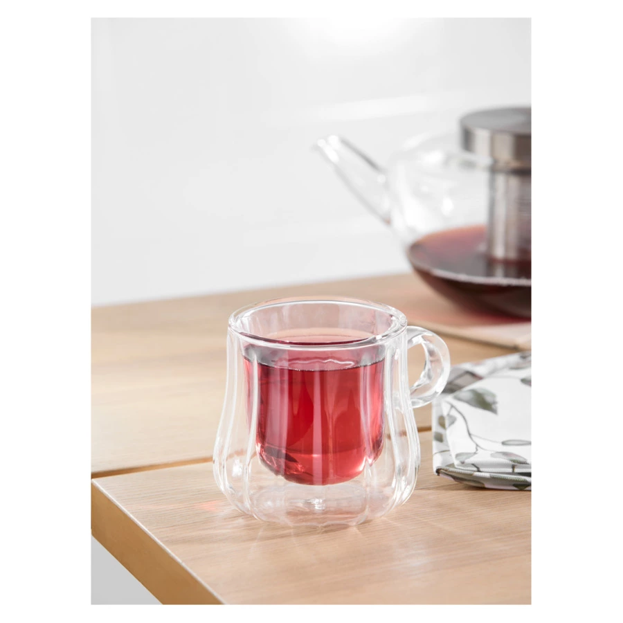 Чайная чашка от бренда Decor de table – это стильный и функциональный аксессуар для любителей чая и кофе. Изделие изготовлено из прочного и термостойкого боросиликатного стекла – долговечного и устойчивого к физическим воздействиям материала. Благодаря конструкции с двойными стенками, напиток долгое время сохраняет свою температуру, а поверхность чашки не нагревается, позволяя комфортно удерживать посуду в руках. Модель из коллекции Cafe de Paris имеет слегка пузатую форму и рельефную фактуру, которая красиво бликует на свету. За счет цветной внутренней поверхности чашка смотрится необычно и стильно.