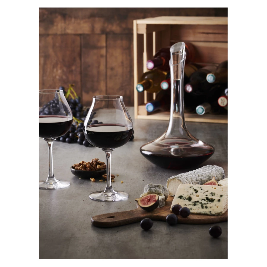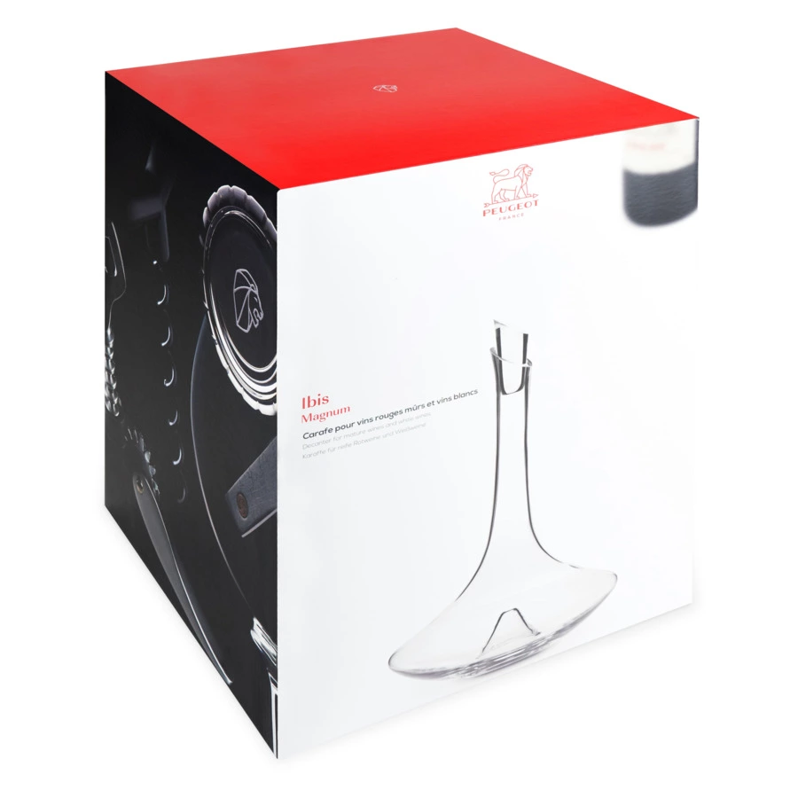 Особеностью большинства декантеров компании Peugeot является наличие пробки, которая расширяет функционал декантера и превращает его в графин. Декантер Peugeot Ibis Magnum рекомендуется для выдержанных красных вин и белых вин. Это декантер для неженок: бургундских Пино Нуаров и Гаме, итальянского Неббиоло, а также очень старых, выдержанных вин. Такие вина зачастую тонкие и не нуждаются в лишнем контакте с кислородом, который может просто убить их ароматику. Поэтому декантер имеет узкое горлышко и не очень широкое дно. Декантер изготовлен из хрустального стекла и имеет подарочную упаковку. Для большой компании.