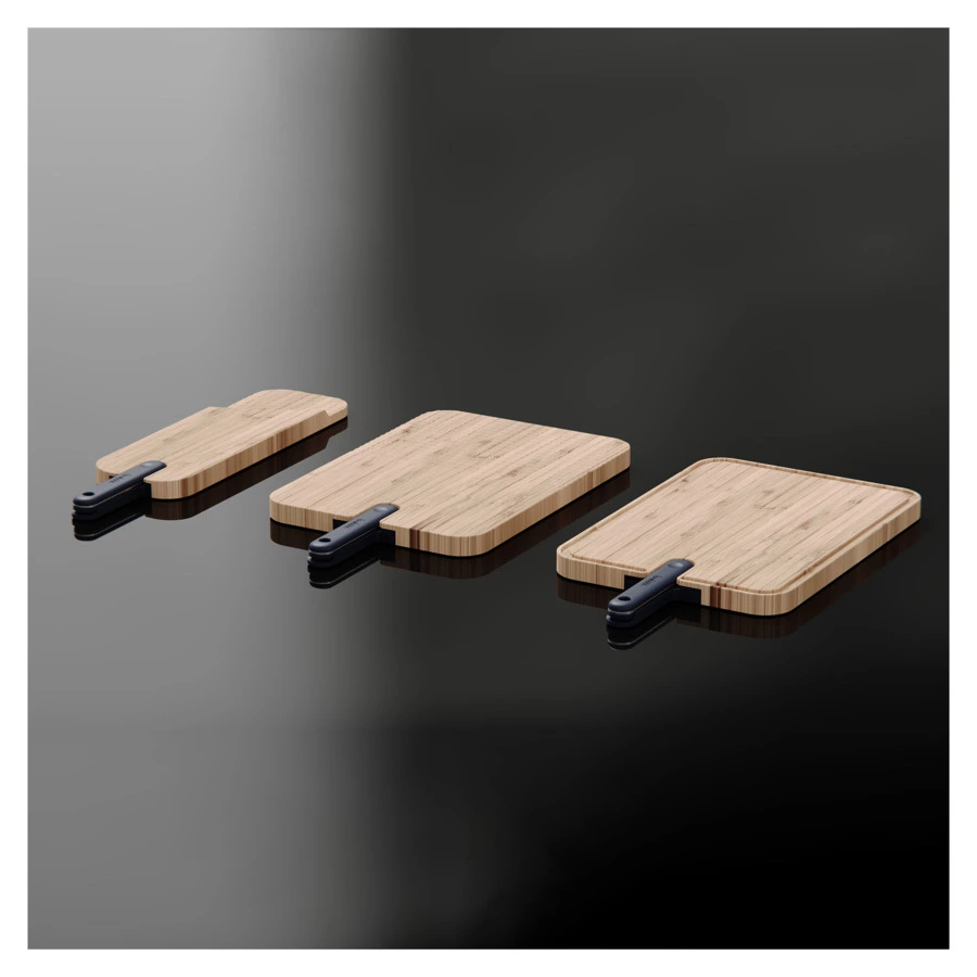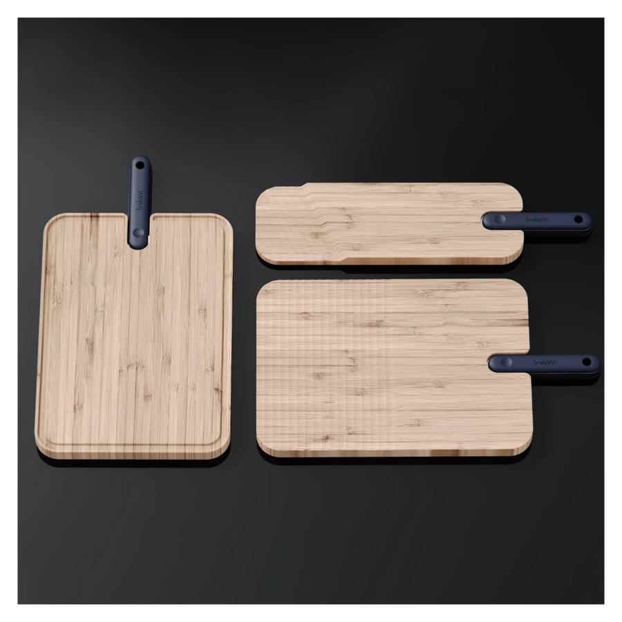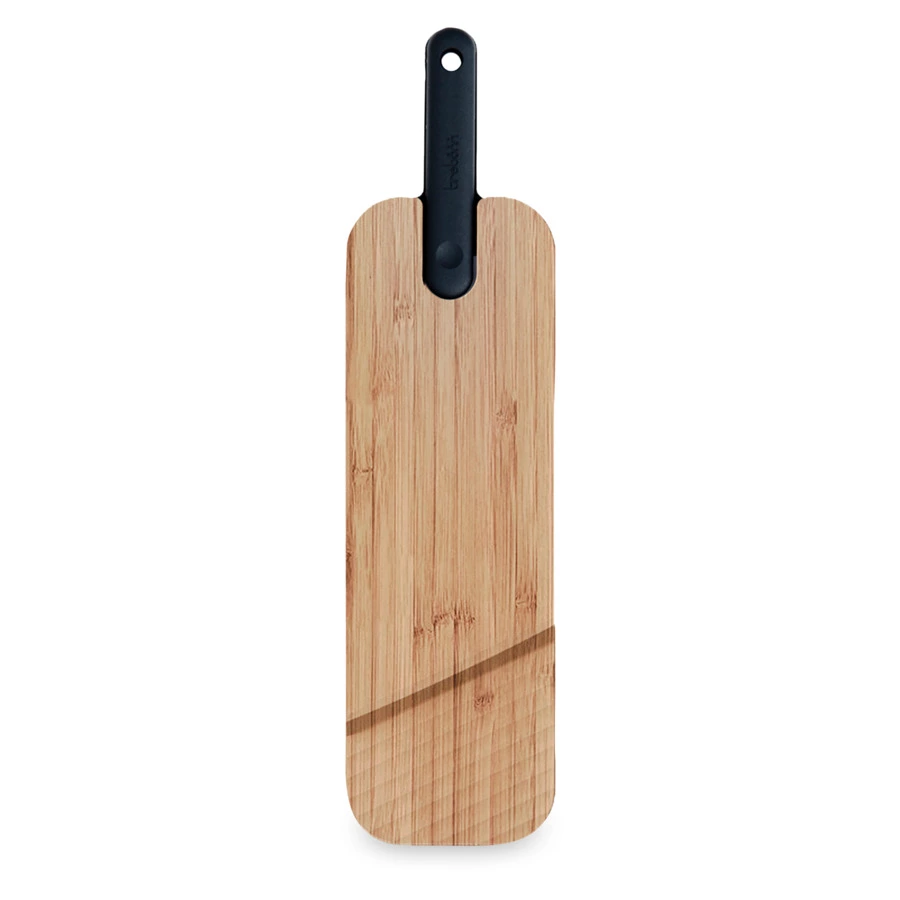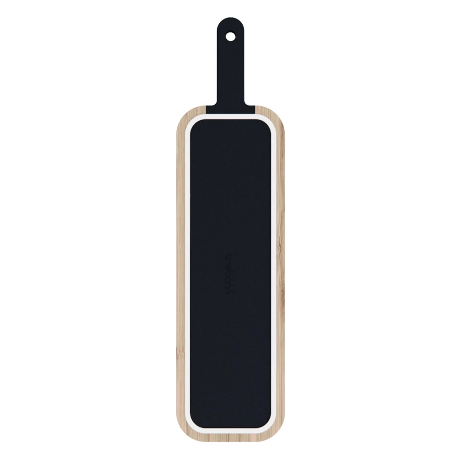 Инновационная разделочная доска со встроенным ножом от итальянского бренда Trebonn приятно удивит вас своим лаконичным дизайном и функциональностью. Изделие разрабатывалось специально для правильной подачи салями, но может использоваться для шинковки любых продуктов. Точность нарезки обеспечат диагональные бороздки, занимающие четвертую часть доски. Модель выполнена из натурального бамбука, известного своей высокой устойчивостью к влаге, химии и механическим воздействиям. Нескользящее основание обеспечивает устойчивое положение на столешнице. Нож для нарезки изготовлен из прочной японской нержавеющей стали. Нескользящая ручка из ABS-пластика гарантирует безопасность в использовании, а магнитный замок надежно фиксирует нож в конструкции доски.