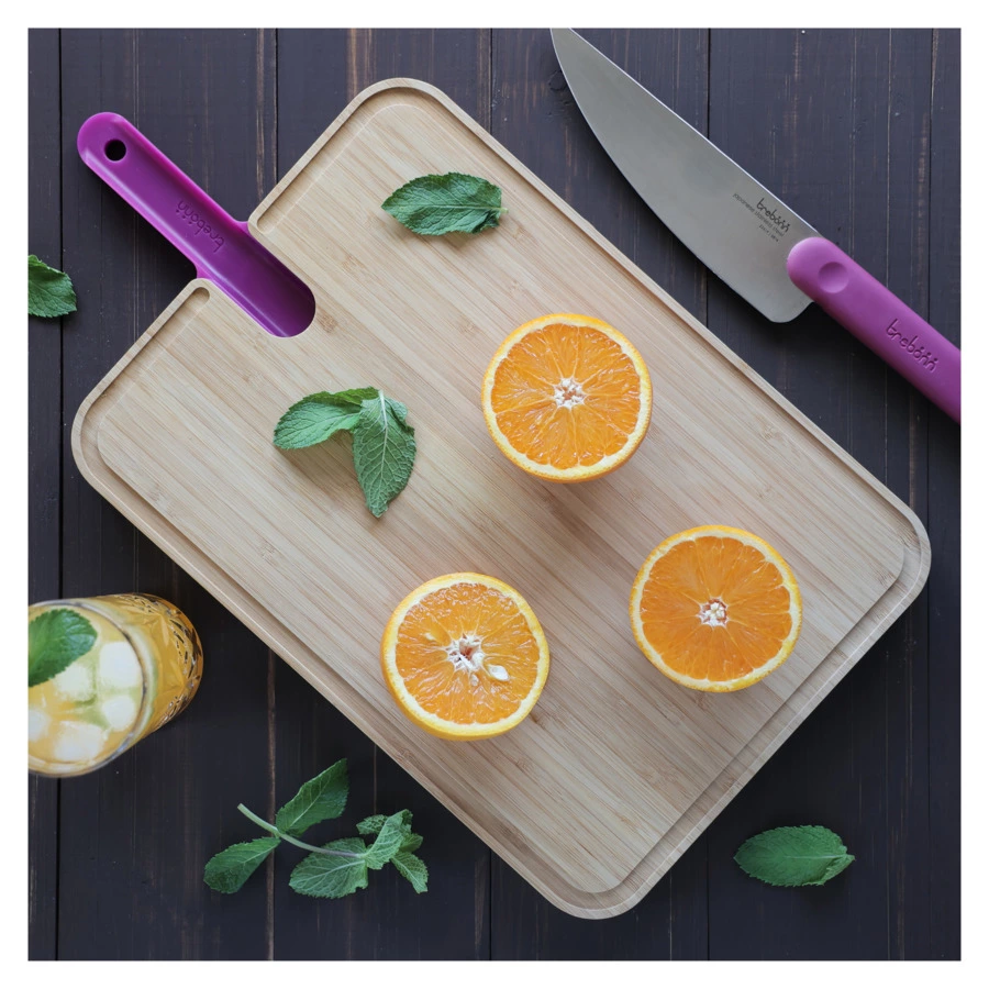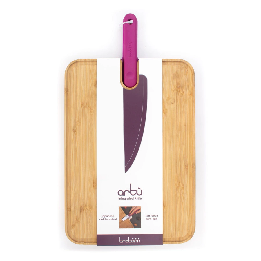 Разделочная доска с поварским ножом от итальянского производителя Trebonn – функциональное решение, которое оценят все любители готовить. Универсальный поварской нож поможет и в разделке дичи, и в тонкой нарезке овощей. Нескользящая ручка из ABS-пластика гарантирует безопасность в использовании, а магнитный замок надежно фиксирует нож в конструкции доски. Разделочная доска из натурального бамбука дополнена нескользящим основанием, которое обеспечивает устойчивость на поверхности. Специальный желоб, проходящий по всему периметру изделия, предназначен для отведения лишней влаги.