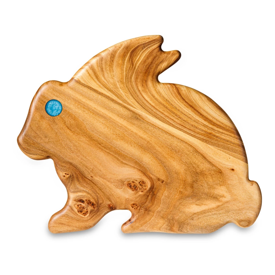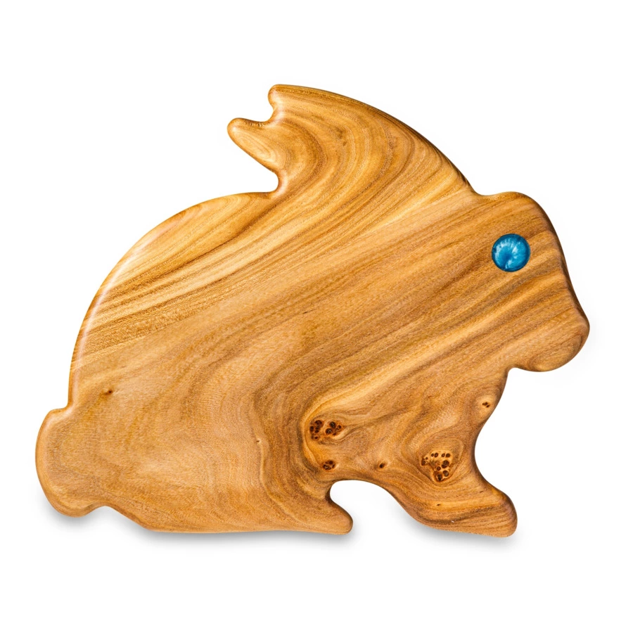 Разделочная доска от бренда Williams Oliver выполнена в виде очаровательного кролика. Её можно преподнести в качестве подарка на Пасху или на любой другой праздник. Модель изготовлена из вяза. Эта порода дерева отличается высокой прочностью, твёрдостью и богатой фактурой. Изделия из вяза хорошо проявляют себя во время эксплуатации: не растрескиваются, не реагируют на влагу, отлично полируются. Разделочная доска «Кролик» украсит собой интерьер кухни или столовой, сделает процесс приготовления приятнее и проще.