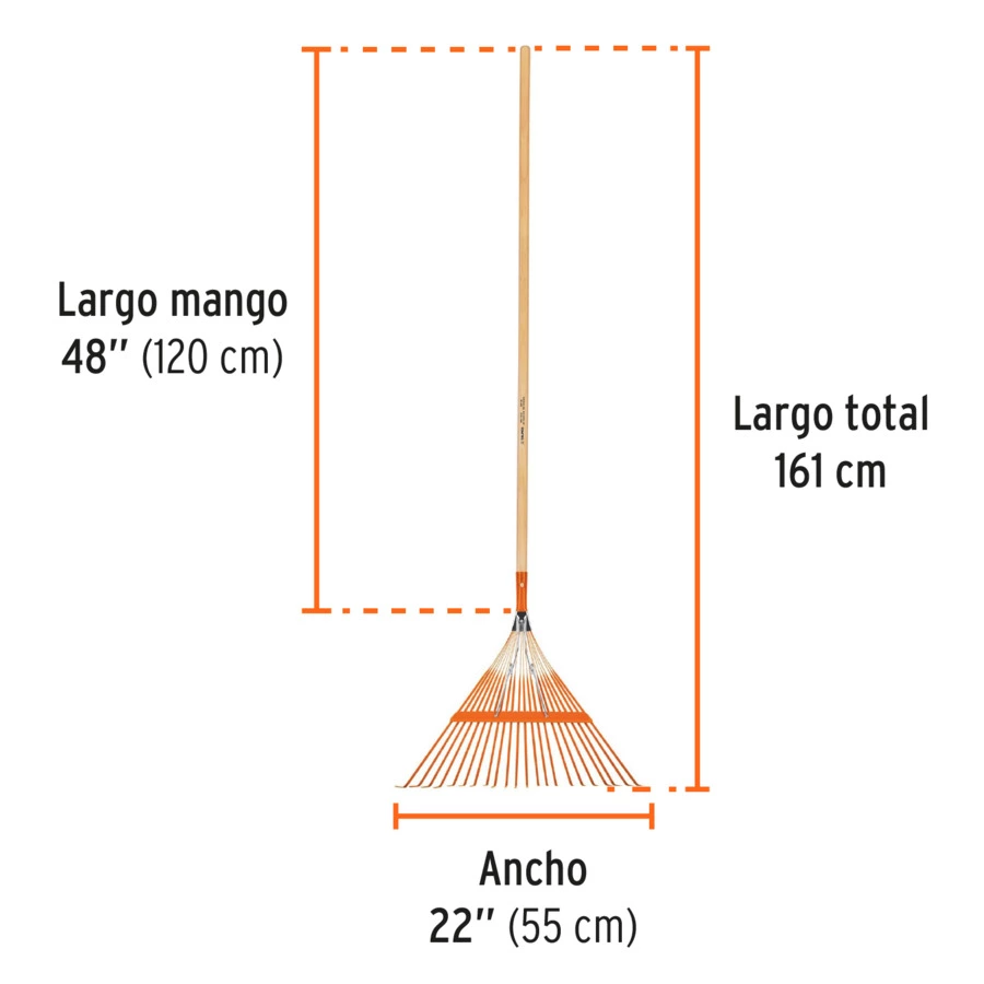 Грабли веерные Truper 22 лепестка 55 см из металла, ручка дерево 120 см, EMX-22 14328, 00010766217