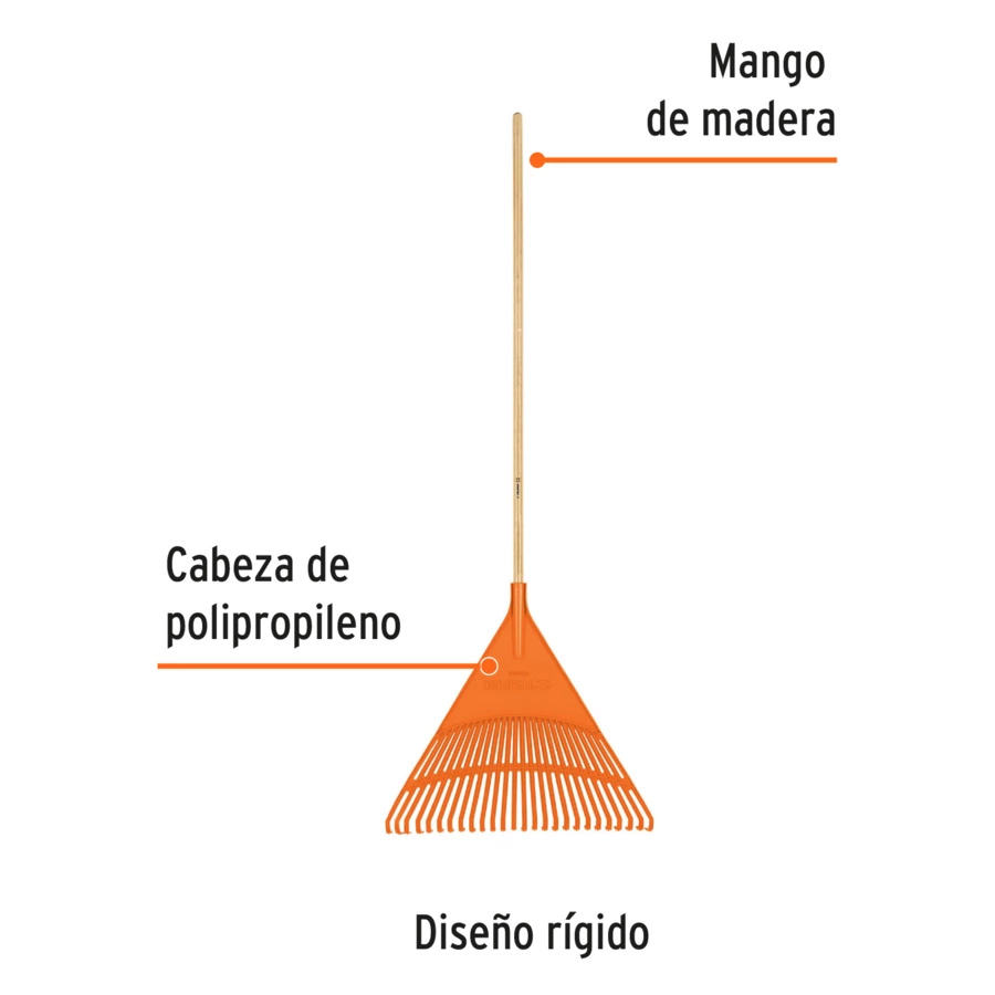 Грабли веерные Truper 26 лепестков 60 см из пластика, ручка дерево 120 см, EP-22R 19786, 00010766221