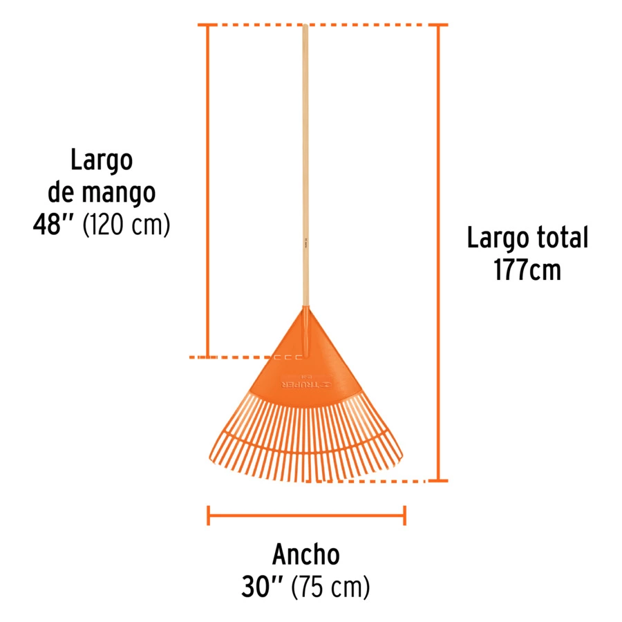 Грабли веерные Truper 30 лепестков 86 см из пластика, ручка дерево, 182 см, EP-30 19065, 00010766224