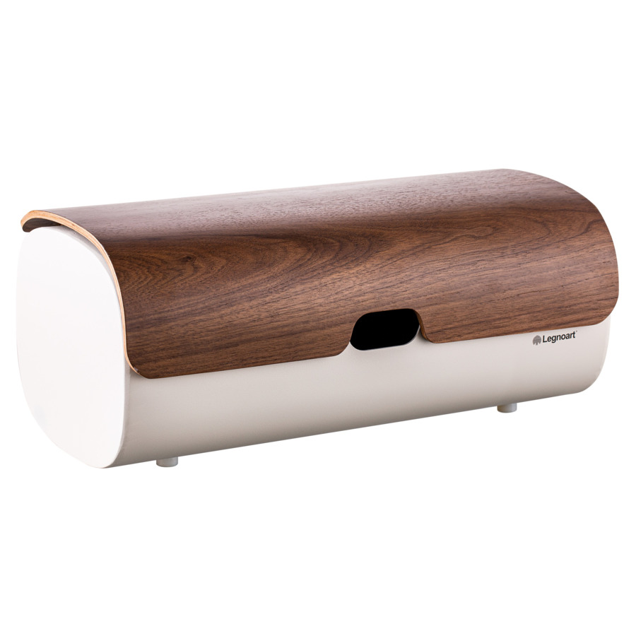 Legnoart использует сырьё высочайшего качества, которое они превращают в эксклюзивные объекты. Вся продукция Legnoart оригинальна, потому что во время производства их мастера работают над каждым предметом так, как если бы он был уникальным, с полной свободой исполнения. Хлебница имеет корпус из углеродистой стали и изогнутую крышку из дерева ореха с ручной финишной отделкой и уникальной обработкой натуральными маслами. Высокое качество материалов продлевают срок службы изделия.