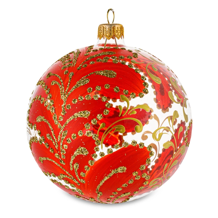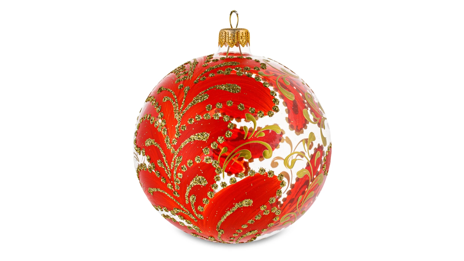 Игрушка елочная шар Bartosh Каменный узор 10 см, стекло, красный с золотым, п/к, 00010732154